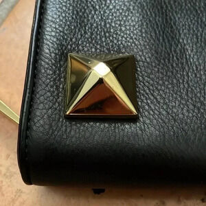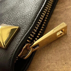 ๐HP๐ LINEA PELLE โจ Black Leather & Gold Stud Snake Reptile Embossed Zip Clutch