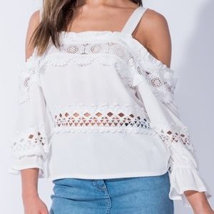 🎉HP🎉 Lace Trim Cold Shoulder Top