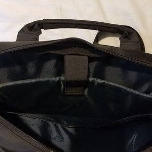 Excellent condition HP laptop bag with tons of pockets and organizers, including a padded laptop compartment. Detachable padded strap. Padded handles. Back has compartment that can either be a pocket or a sleeve to slide over luggage handle. Perfect for work and travel. Attractive, comfortable, and professional!