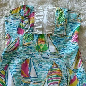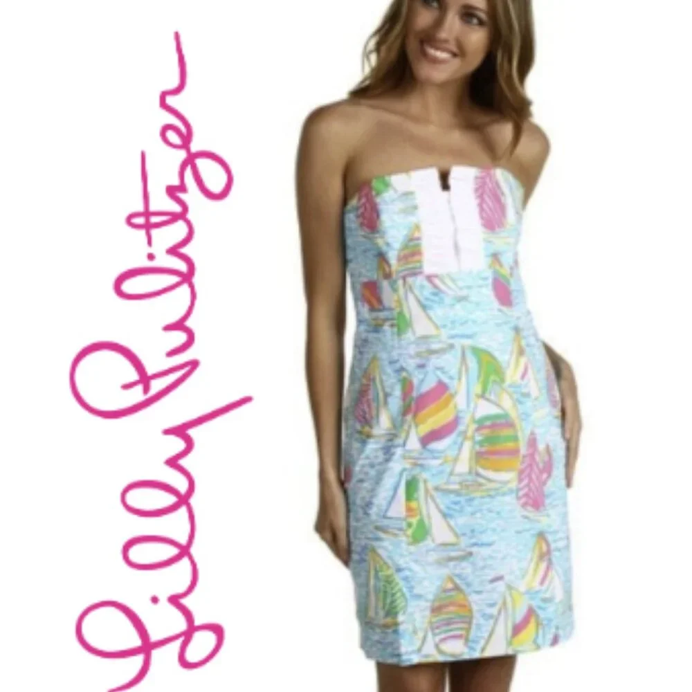 Lilly Pulitzer Size 00 You Gotta Regatta Sailboats Strapless Franco Dress. EUC. No holes, tears, or snags. Love, love, love this dress . . . just doesn’t fit any longer. 😒