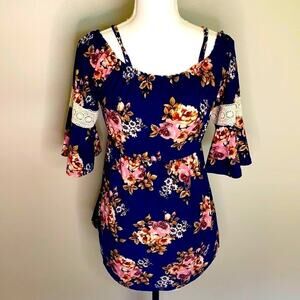 ⭐️Hoat Pick 8/31/21. This top is so cute. Can be worn on shoulder or off shoulder has adjustable straps. Beautiful lace detailing has an elastic waist. Please see photos for all measurements. This top is very very soft.