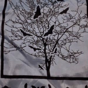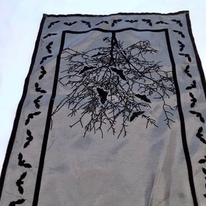 This table runner is the perfect accent to your table! Measures 70' long and features velvety bats and trees!