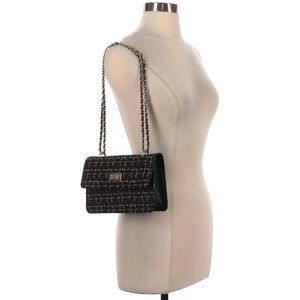 👛HP! NWT Badgley Mischka Monochrome Tweed CrossBody ChainStrap Messenger Bag