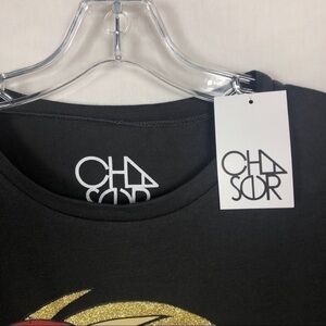 Brand new with tags Chaser tee with David Bowie’s badass rebel name in a gold glitter circle! Shirt is dark slate grey with red and gold logo.