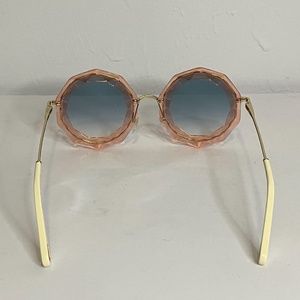 HP! 💕NWT Chloe’ pink large round scalloped edged blue lens gold sunglasses!