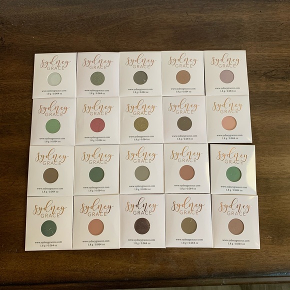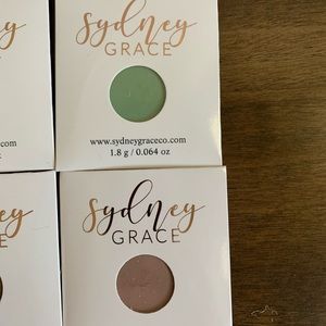 Brand new eyeshadows from Sydney Grace, this is Mel’s Memory collection. There are 12 shades of eyeshadow with various matte and shimmer finishes. Mostly neutral shades with some greens and pinks added in. Each shade is listed individually in my closet, see those for shade names and closeups. Shades include green mist, cadet, turtle bay, bravo, fairytale, commission, relax, vanguard, San Jose, beyond, honeydew and golden rose. Opened only for picture purposes. The photos show more shadows than 12; some shades have sold individually and the ones that will be included with purchase are listed above. Please ask if you have any questions, need measurements or more pictures. No trades.