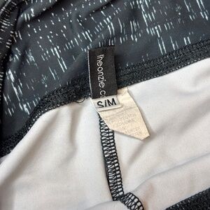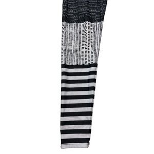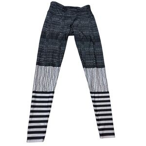*Used* black, white & gray Onzie leggings in a size S/M. Features stripes & graphic pattern.