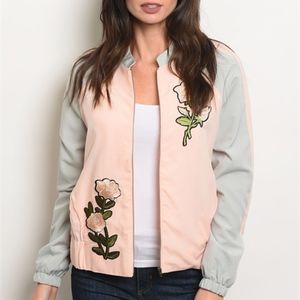 πHPπ Pink & Gray Flower Patch Bomber Jacket