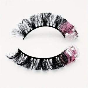 *NWT* pink & black rhinestone gem faux mink false lashes. Eyelash glue NOT included.