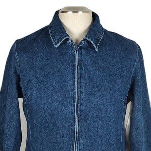 HP🔥 Retro Newport News Long Zippered Denim Collar Dress Coat Size Large