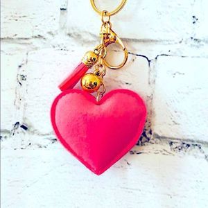HP 🥰 Rhinestone Rainbow Heart Puffy Tassel Keychain Purse Charm