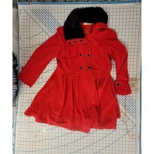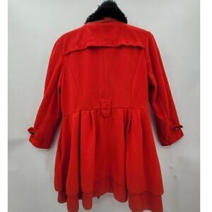 Make a statement with this vintage-inspired red double-breasted swing coat featuring a luxurious faux fur collar for a touch of glamour. The tailored peplum silhouette flatters your figure while adding a chic, feminine twist to classic outerwear. Perfect for cold weather, this coat offers warmth and style with its bold red hue and elegant design. Ideal for formal occasions or elevating everyday looks, this coat is a timeless addition to any wardrobe.