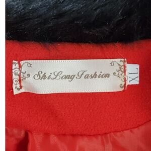 Shi Long Fashion Vintage Red double breasted Faux Fur Collar Peplum Swing Coat