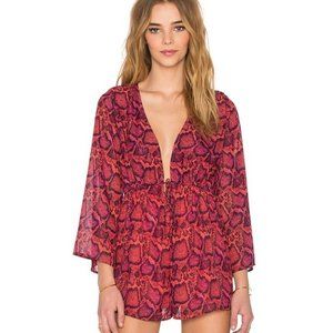 💙Host Pick 9/23/21 - Standout Style Posh Party💙 Gently worn Show Me Your Mumu Popsicle Python Print Romper, Size S. Super cute & flirty romper, featuring deep v-neckline, front hook & eye closure for modesty, semi-sheer 3/4-length sleeves, edgy red python print, drawstring waist, mini shorts silhouette. Perfect for going out! Just add heels, jewelry, and a bag or clutch to complete the look!