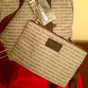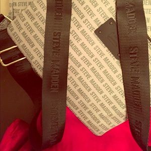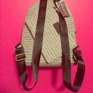 πBest in Bags Party HPπ πAuthentic Steve Madden Logo Backpack. Grey Print. Adjustable Black Logo Straps. Black & Gold Trim. 3 Zipped Compartments with Black Tassels. 2 are Black Logo Lined. Largest has an Inside Zipped Pocket. Also a 2-Slot Front Organizer. Roomy! Separate Logo Grey Print Bonus Case to store Cell phone & Miscellaneous Items.ππΌ Body: 100% Nylon/Trim: 100% Polyurethane. Lining: 100% Polyester. Brand New. Excellent Condition. No Trades. See Other Bags @marlanap4kids.