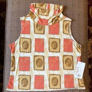 NWT Jex Tan & Light Orange Geo Mock Neck Shell
