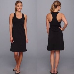 The North Face Abby Racerback Dress. Women's size XS. Preowned in good condition. Dog friendly home. Lovely black dress from The North Face. This is the Abby Tekware racer back style. Faux snaps in front, built-in shelf bra, side zipper pocket. 90% recycled poly, 10% spandex. Super light and comfortable!