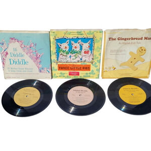 Vintage Children's Kids Story Records: "Hi Diddle Diddle," "The Three Little Pigs," and "Three Billy-Goats Gruff" Speed 33 1/3 Vinyl LP format for an authentic and immersive storytelling experience Delightful tales that captivate young minds and ignite their imagination Nostalgic and collectible items that evoke memories of childhood