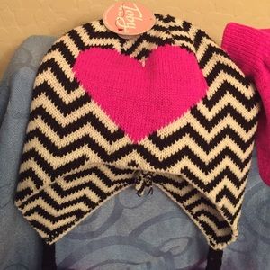 โ๏ธEverything Kids Party HPโ๏ธToby Peruvian Style Hat with Pom Poms plus Gloves. Girls. OS. Hat is Black & White Geometric Print with. Large Pink Heart in the Front. Has White & Pink Pom Poms. Pink Gloves. 96% Acrylic/4% Other Fibers. Brand New. Excellent Condition. No Trades.