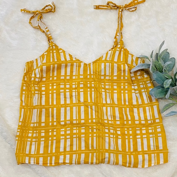 Universal Thread tank top in yellow & white with spaghetti tie straps.