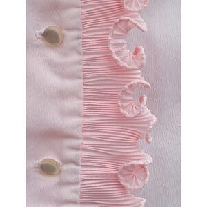 Vintage Pink Button Up Ruffled Mandarin Neckline Long Sleeve Ruffle Cuffs Crepe Blouse Top