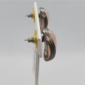 Vintage rose quartz and silver colored earrings.
