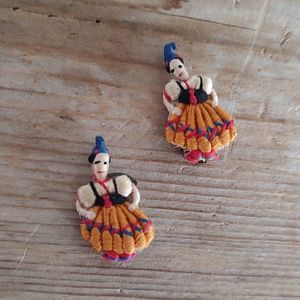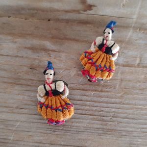💃HP! 💃Vtg Guatamalan Worry Dolls Clip-on Handmade Earrings Embroidered Mini