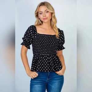 HP! 🎉 Woman's Short Sleeve Polkadot Woven Top