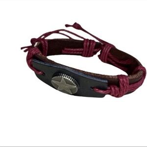 HP X1 🔥 Wine Red Cowhide Bracelet with Star Pendant: 17cm Adjustable Bangle
