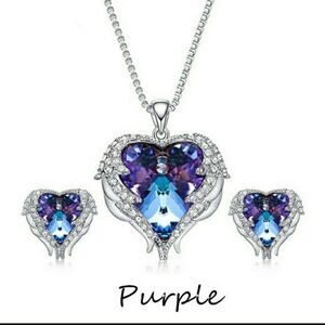 3 pc. Set pendant necklace and earrings purple or rose 18" chain, silver setting with glass stones for elegant gift mother's day, birthday, valentines day gift.