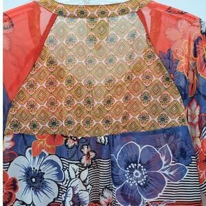 HPAnthropologie Floral Stripe Sheer Long Sleeve Henley Tie Front Blouse