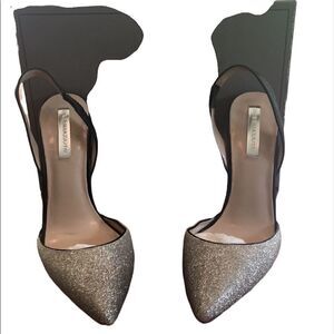 BCBGMaxAzria Black woth silver glitter front slingback heels. Size 8M. Worn only once. Slight wearing of glitter on front point of shoes, not very noticeable. Great condition.