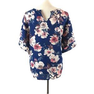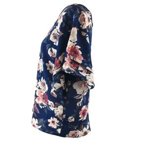Ruffle cuffs add trendy styling to this floral print top. Fit: this style fits true to size. - Crew neck - Double ruffle cuff - Short sleeve styling - Allover floral print - Keyhole accent on back - Button closure on back - Lightweight construction - Seam detailing throughout - Approx. 26" length (size S)