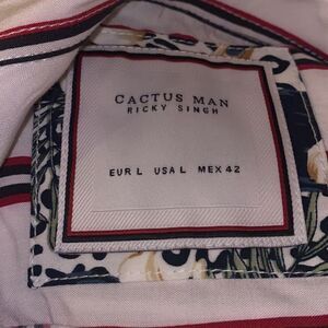 ✨HP✨Cactus Man Ricky Singh Men’s Shirt White Vertical Stripes Viscose✨