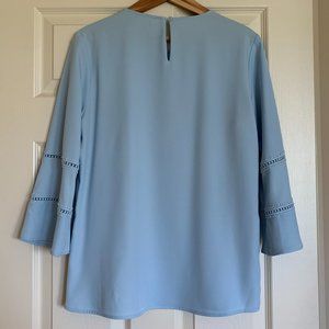 🎉HP🎉Calvin Klein Light Sky Blue Shirt Womens SZ M Long Flare Sleeve Round Neck