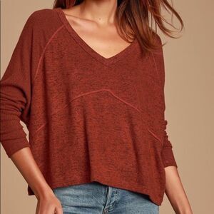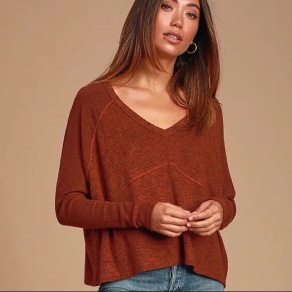 Lulus Exclusive! The Lulus Cozy Central Rust Orange Ribbed Sweater Top is exactly what you need this snuggle season! Ultra-soft stretch knit shapes this sweet sweater top with a V-neckline and oversized, boxy bodice with unique stitched detail throughout. Long raglan sleeves have a ribbed construction that adds subtle contrast.