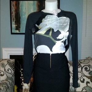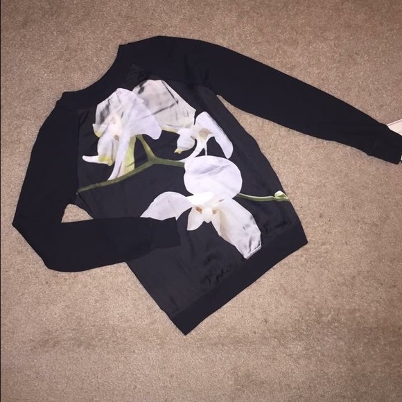 Front has a silky feel floral Print. Arms and back is a sweatshirt/ cotton material. Very cute (NEW)