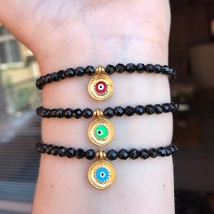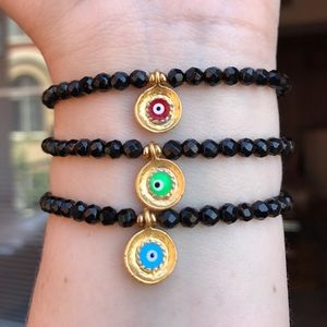 💕HP💕Evil Eye black Beaded stretch Bracelet