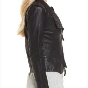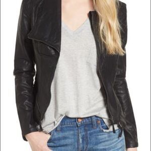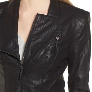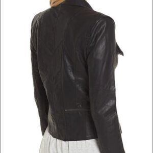 Adjust your attitude with a tailored biker-babe jacket constructed with detailed seaming. Allover zip accents bring the urban edge, while a slim, feminine cut complements your curves.