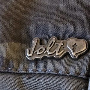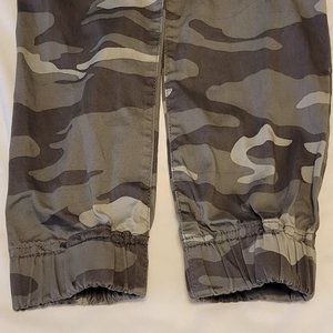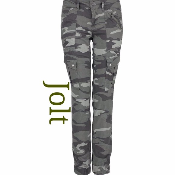 Jolt slim fitting fatigue green camouflage fatique cargo elastic band at ankle jean pants.
