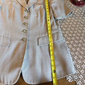 short sleeve jacket, shoulder to hem 25" Very small green and cream check.🌹