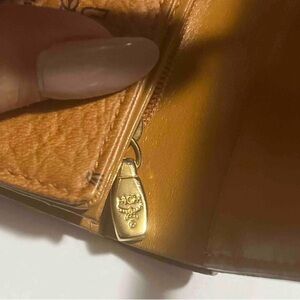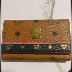 HP🎉MCM Brown Leather Wallet, MCM Studs, Pink strip FINAL PRICE