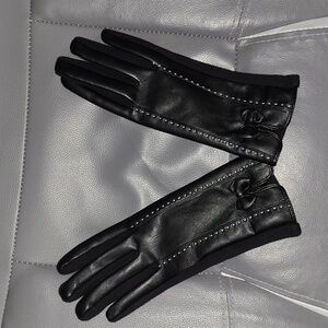 Never worn. Super cute and classy faux leather gloves with bow detail. Classic white stitching on front of glove and detail on each finger for easy texting.