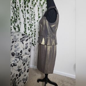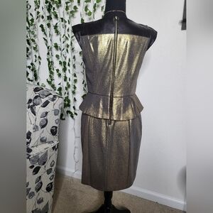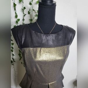 💚HP💚NWT Cynthia Steffe Gold Peplum Bodycon Mini Dress With Black Leather
