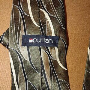 🎊*HP*🎊Puritan Mens Silk Tie With Abstract Wave Design In Brown & Beige Tones
