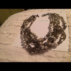 RARE Necklace Pearlesque and Stone--no longer made....exquisiteπI can't capture the different high quality rocks, stones, bevels, and pale grey-tone pearls (knots between each pearl for security), purple and smoky Amber stones, black pave rounds, and rough-other faceted high quality stones.Gunmetal rhodium (platinum family) toggle clasp, can hang in neat row of five or be twisted, toggle in the back, front or to side---it's awesome. with denim, but ready for the Ritz π *host pick*Bundles Save!