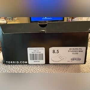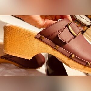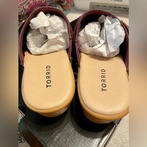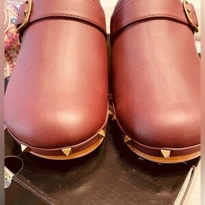 🌟HP🌟STUDDED CLOGS Torrid Roomy 8.5 Burgundy Wooden 3.5” Heel NEW Extra Comfy