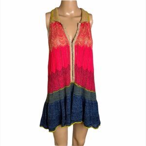 FREE PEOPLE SLEEVELESS PEPLUM KNIT SWEATER TOP BLUE COMBO $128 RETAIL