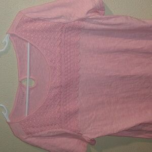🌟HP🌟Talbots Pink Lace Yoke Tee 100% Cotton L Summer Spring Lightweight. Great condition
