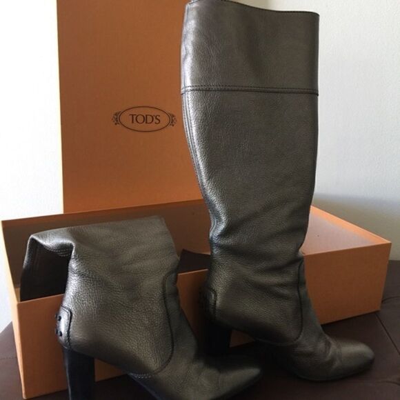 Italian-made metallic grained leather, these shimmering Tod's boots are like tinsel on a Christmas tree. And I don't mean tacky. Check out that practical chunky heel, the detailed top-stitching, and the shaft height. Practical and pretty. - Tod's Jodie Tube Boot Metallic limited edition.